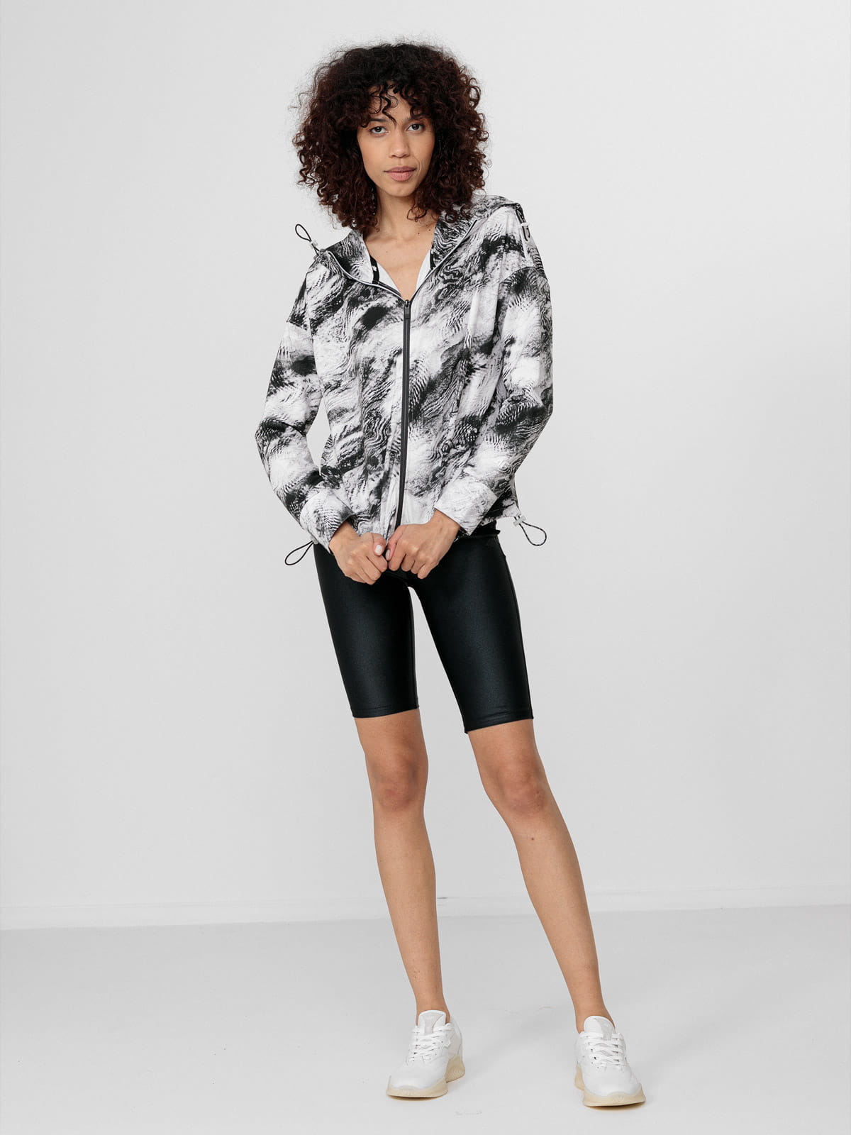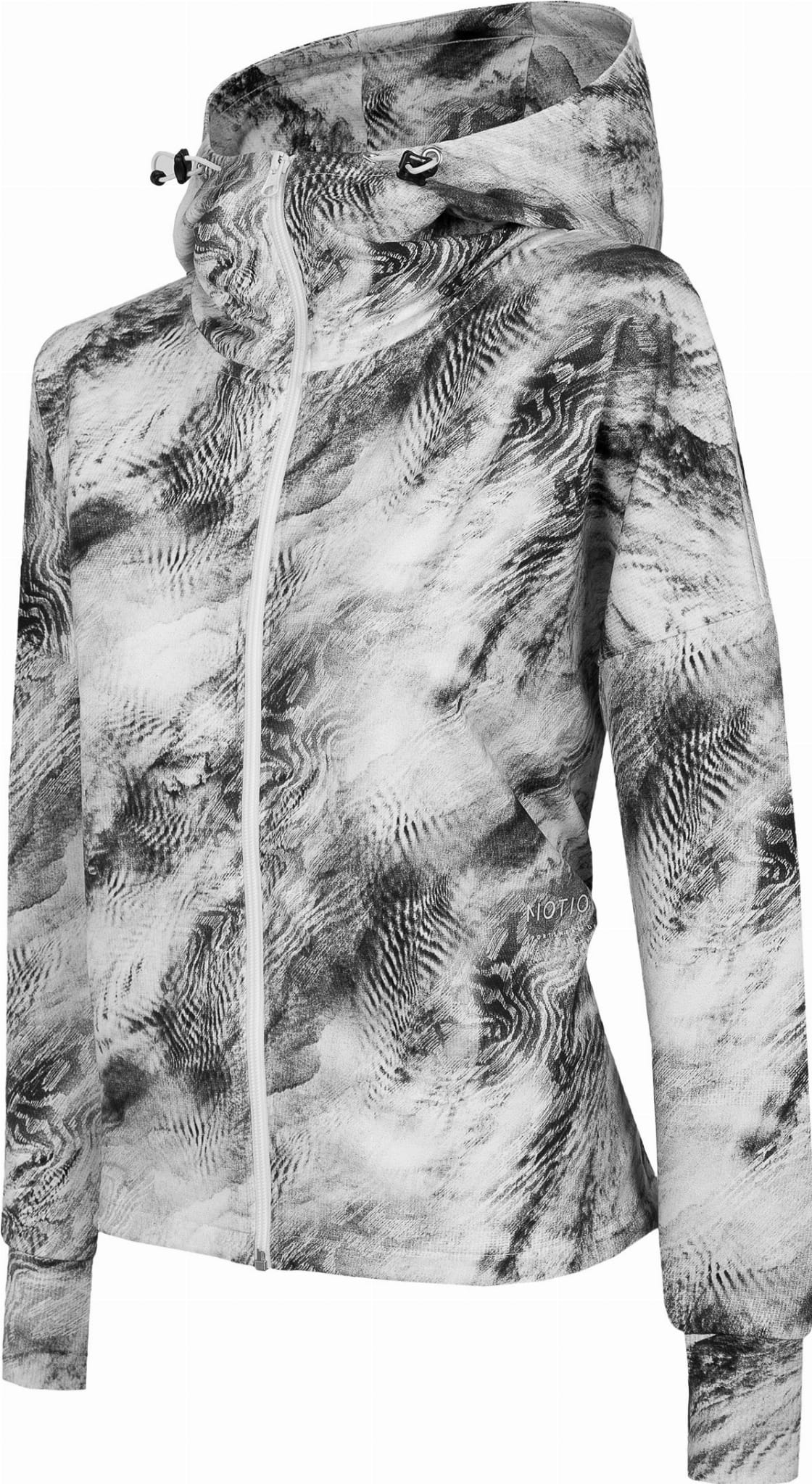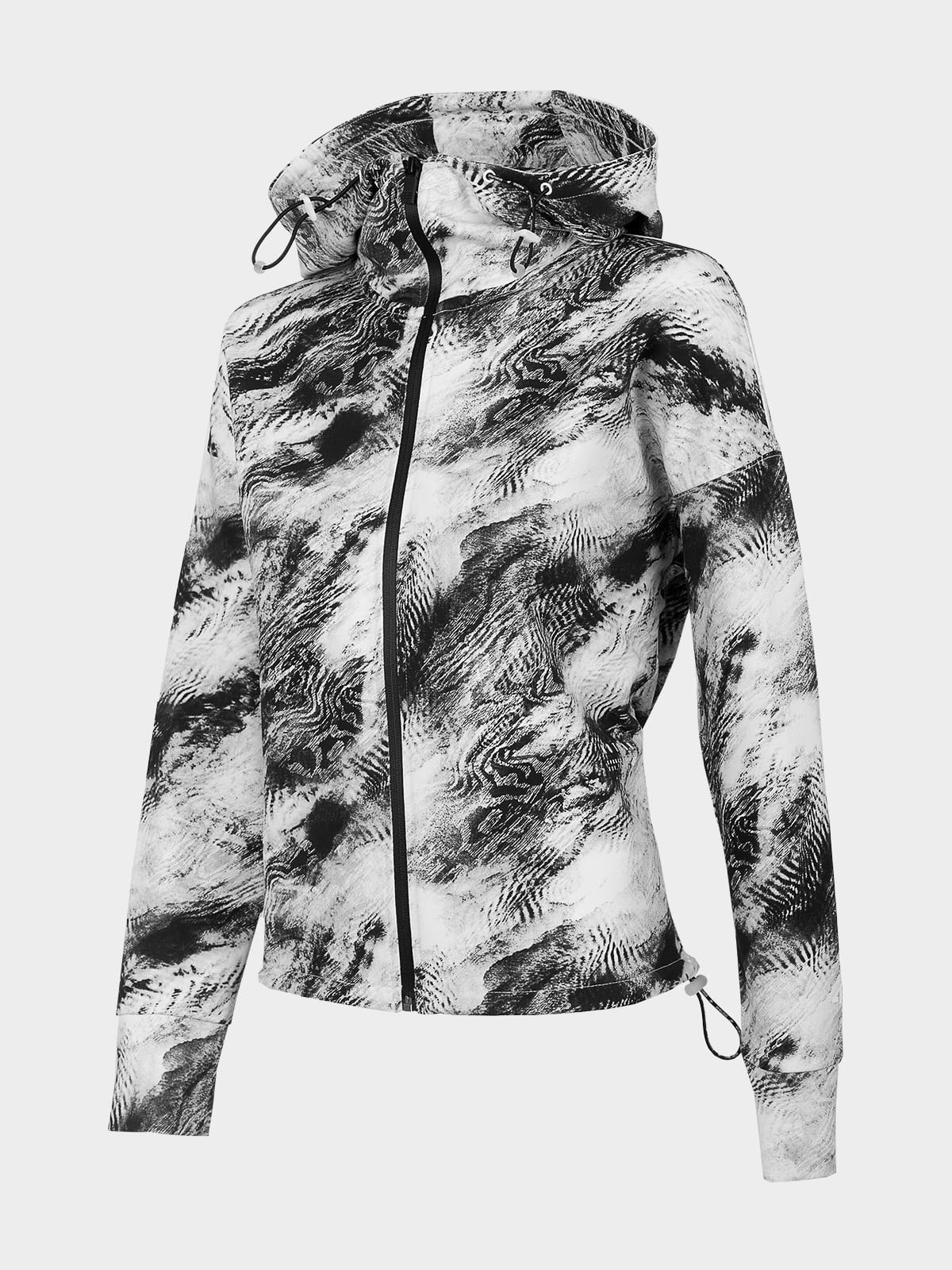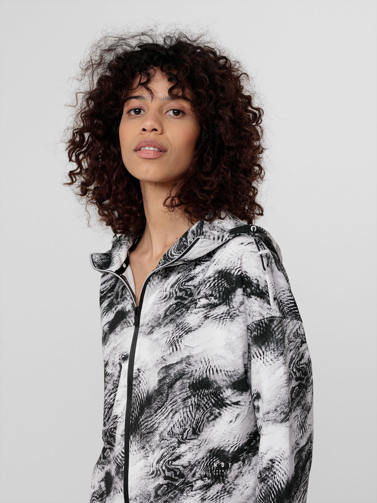Damska rozpinana bluza o swobodnym kroju ze zintegrowanym kapturem z regulacją 2D. Wykonana z elastycznej, nieocieplonej dzianiny z wysoką zawartością bawełny.
