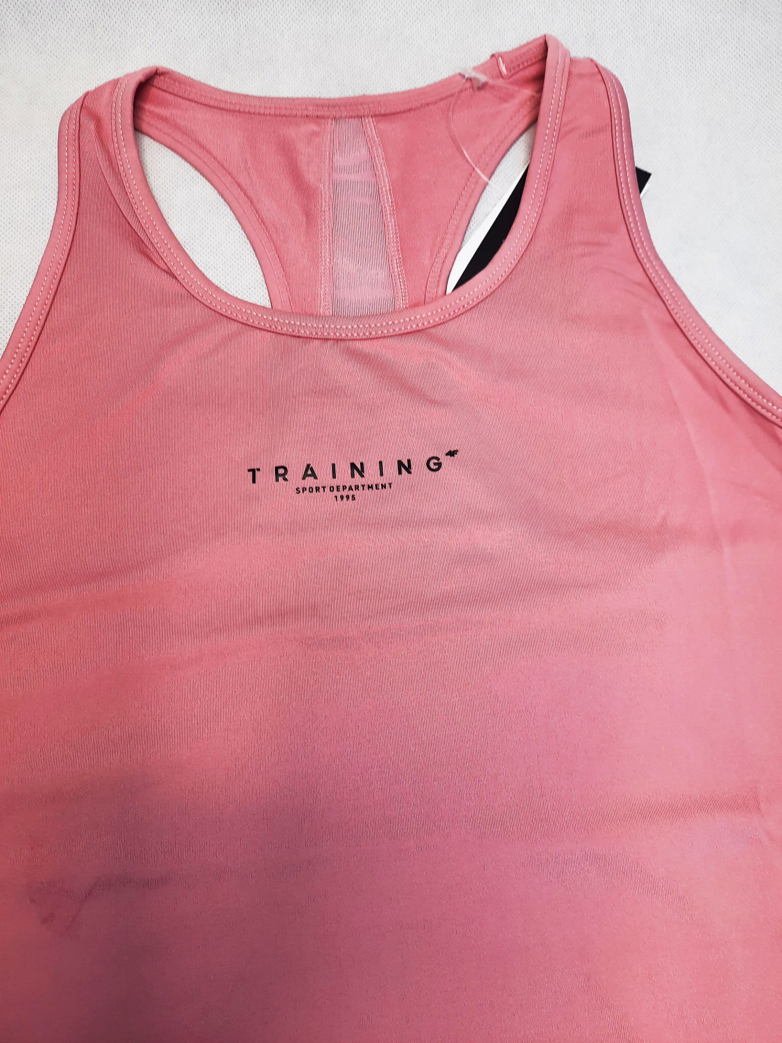 Damska koszulka treningowa z bokserskim wcięciem posiada odprowadzające wilgoć włóka 4FDry, dzięki czemu zapewnia komfort podczas ćwiczeń.