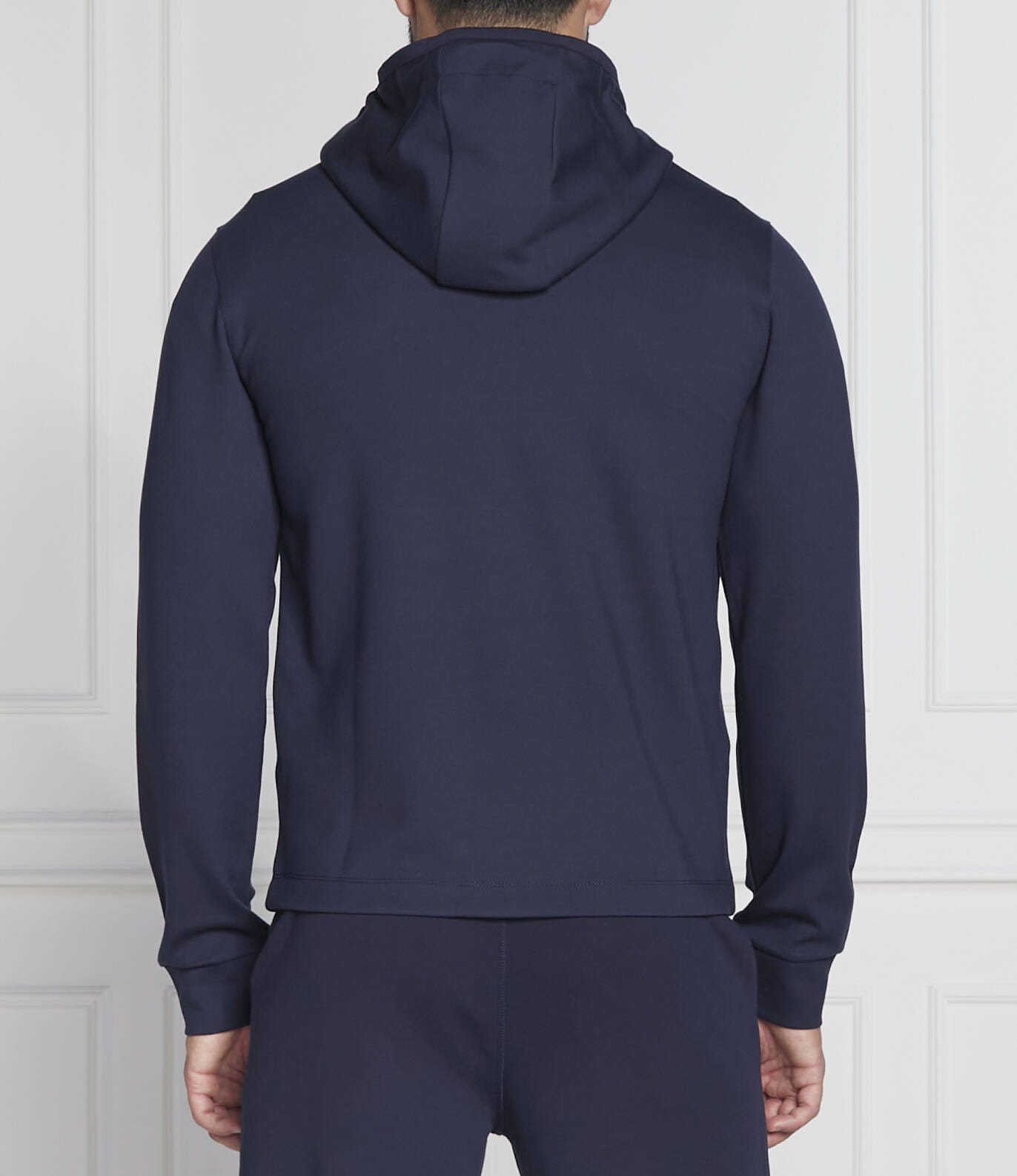 Bluza z kapturem zapinana pod szyją na suwak. Na przodzie kieszeń kangurka zapinana na dwa suwaki po bokach, góra wykończona zakładką z zapięciem na dwa zatrzaski.