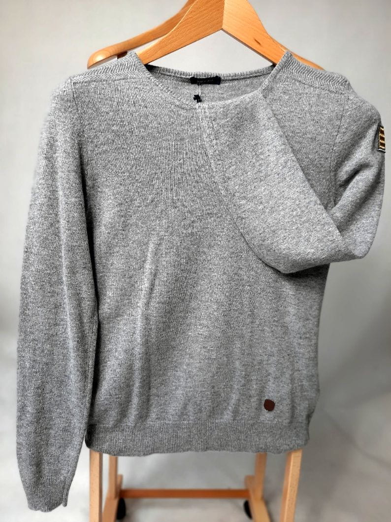 Sweterek damski z okrągłym dekoltem.