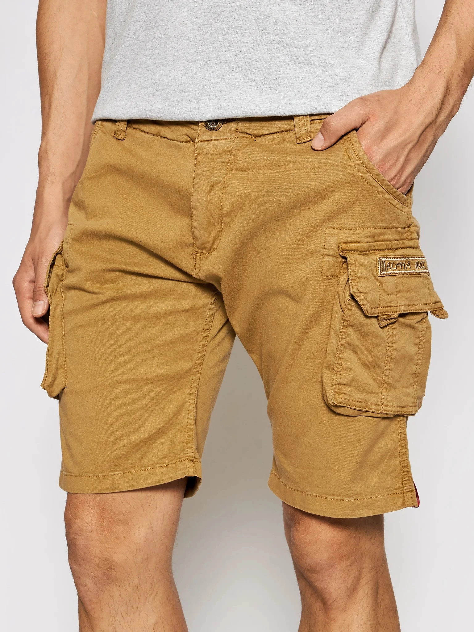 - Detale premium – haftowane logo Alpha Industries, charakterystyczna pętla na nodze oraz stylowa flaga na klapce kieszeni cargo podkreślają unikalny design.